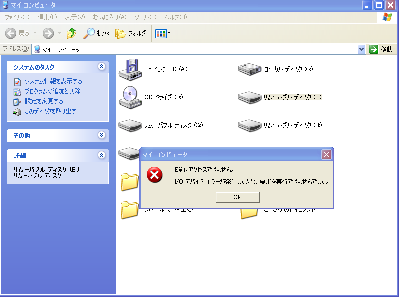 すると「データが壊れています すぐにフォーマットしますか?」とPCからのメッセージ